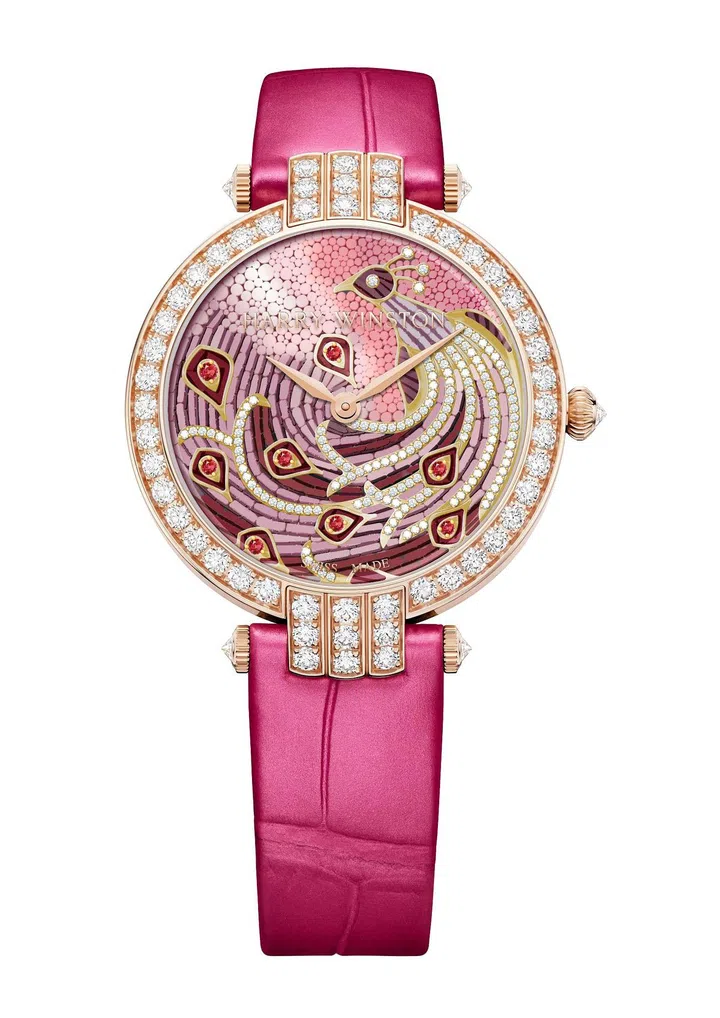 意大利名城拉韦纳以其精致华美的马赛克艺术而闻名天下。海瑞温斯顿(Harry Winston)为了追寻与众不同的精湛工艺也将新款腕表制作的目的地定在了这座古城。拥有千年历史的玻璃微型马赛克工艺隐藏在卓时Premier系列Precious Peacock 36 毫米自动腕表的精致表盘之后,成就了这只备受海瑞温斯顿高级珠宝设计团队宠爱的孔雀。