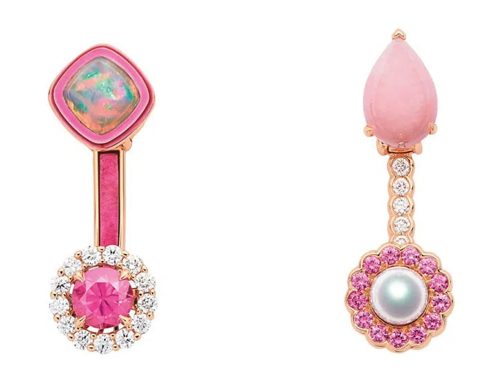 Dior et Moi Tribales粉红蓝宝石与蛋白石不对称耳环
