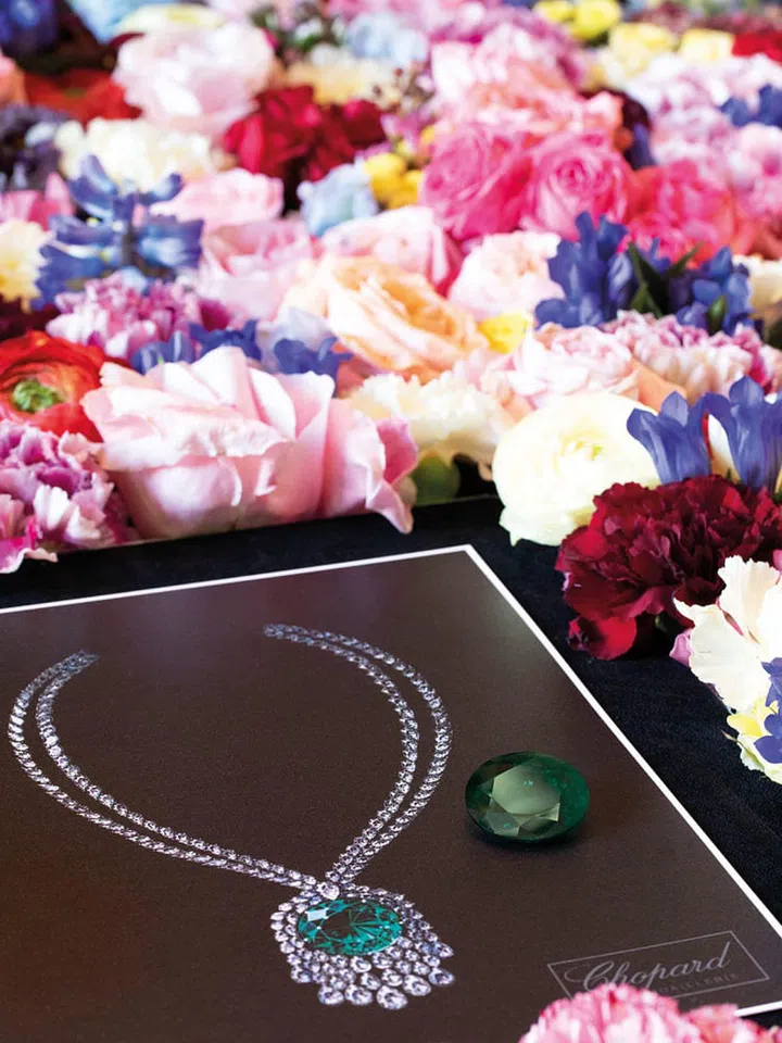 品牌联合总裁兼创意总监Caroline Scheufele对珍罕宝石充满热忱,怀着对神圣地球家园的敬畏之心,她从全球的四个角落觅得奇珍异石,其中包括一颗重达21.04克拉且未经热处理的蓝宝石、一颗梨形切割且未经热处理的鸽血红宝石、还有一系列哥伦比亚祖母绿,其中最大的那颗祖母绿重量不低于61.79克拉。