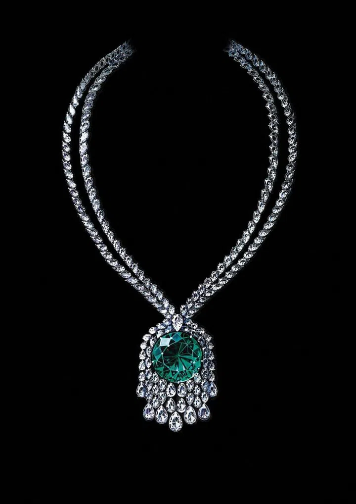 萧邦Exceptional Gemstones系列祖母绿白金项链。