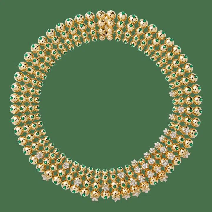 Cactus de Cartier项链:18K黄金,祖母绿,镶嵌204颗明亮式切割钻石