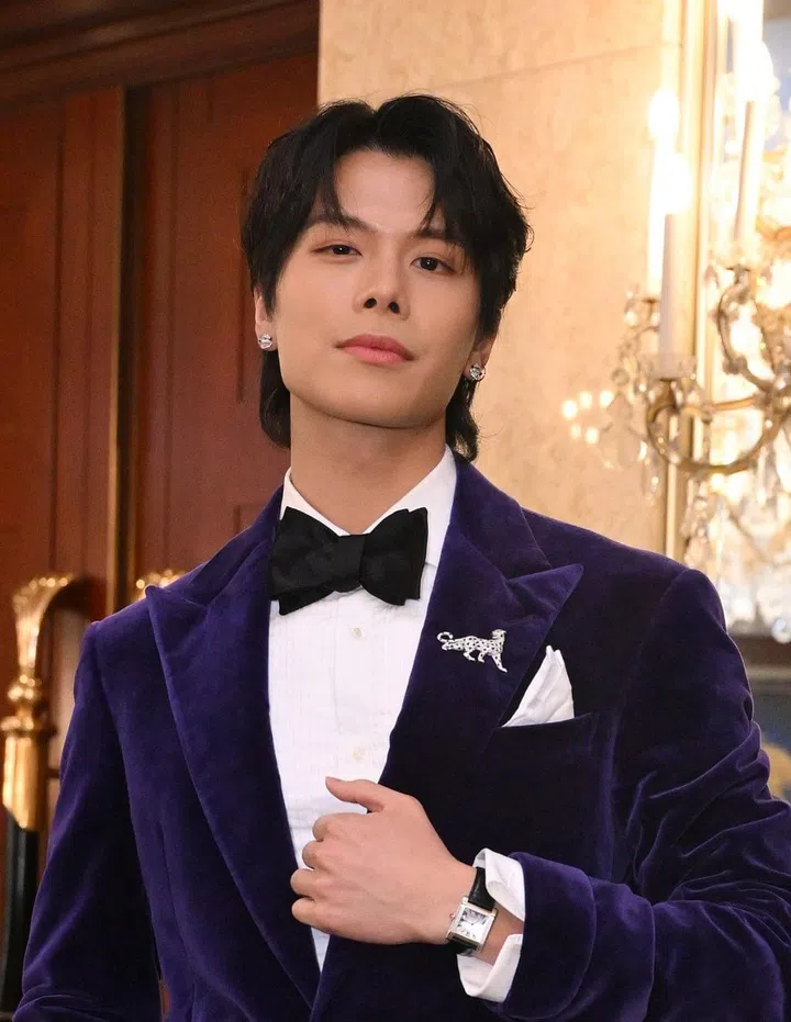 《风华》4月数码封面人物Lennard Yeong选择以蒂芙尼(Tiffany & Co.)标志性Schlumberger高级珠宝系列铂金镶钻Orchid胸针为一身帅气西装造型增添璀璨亮点。