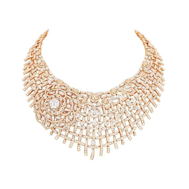 2020年,香奈儿首度以经典斜纹软呢布料为主题,推出Tweed de Chanel顶级珠宝系列,巧妙将坚硬的贵金属、宝石与钻石,交织如珍贵布料。去年,品牌再度推出全新Tweed de Chanel系列,广纳香奈儿世界中包含“缎带”、“山茶花”、“彗星”、“太阳”和“狮子”五个重要符码,并分别白色、粉红色、蓝色、金黄色和红色五种色彩,以及全新珠宝编织手法,更完整的述说斜纹软呢跨越时空和风格界线的隽永魅力。