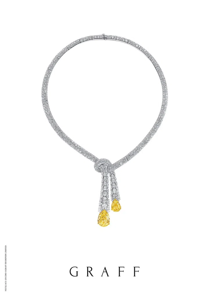 格拉夫梨形黄钻和多形切割白钻项链/Graff。