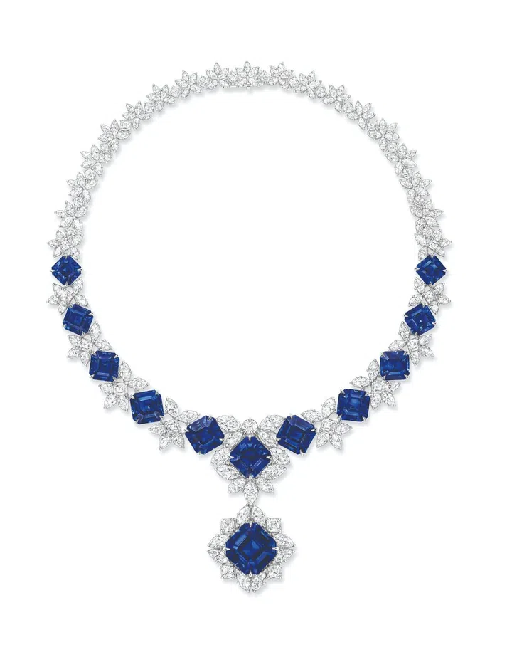 The Royal Adornments高级珠宝系列Countess项链,白金镶嵌蓝宝石和钻石/Harry Winston。