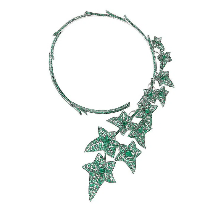 Lierre de Paris常春藤祖母绿问号项链/Boucheron。