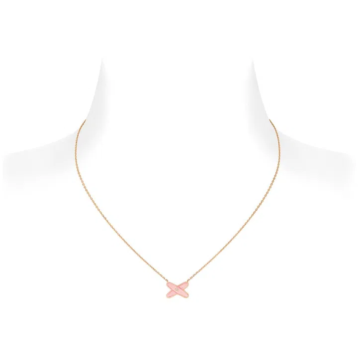 这个情人节,Chaumet经典的Liens系列与Plume系列分别都推出了全新的成员。用粉色蛋白石与绿玉髓打造Jeux de Liens新品,系列经典的交叉丝带的造型象征着爱人之间的纽带,也寓意着二人不可分割的情缘。粉色蛋白石象征着和谐安宁, 情人相知相守也是最美的祝福。