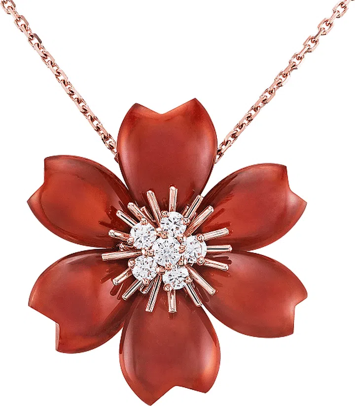 Rose de Noel作为花朵系列中的一个分支,再次展现了梵克雅宝的鬼斧神工,在每一片花朵中重新演绎大自然的春意盎然。爱情的感受,便是每天都像春天一般开满着花儿。