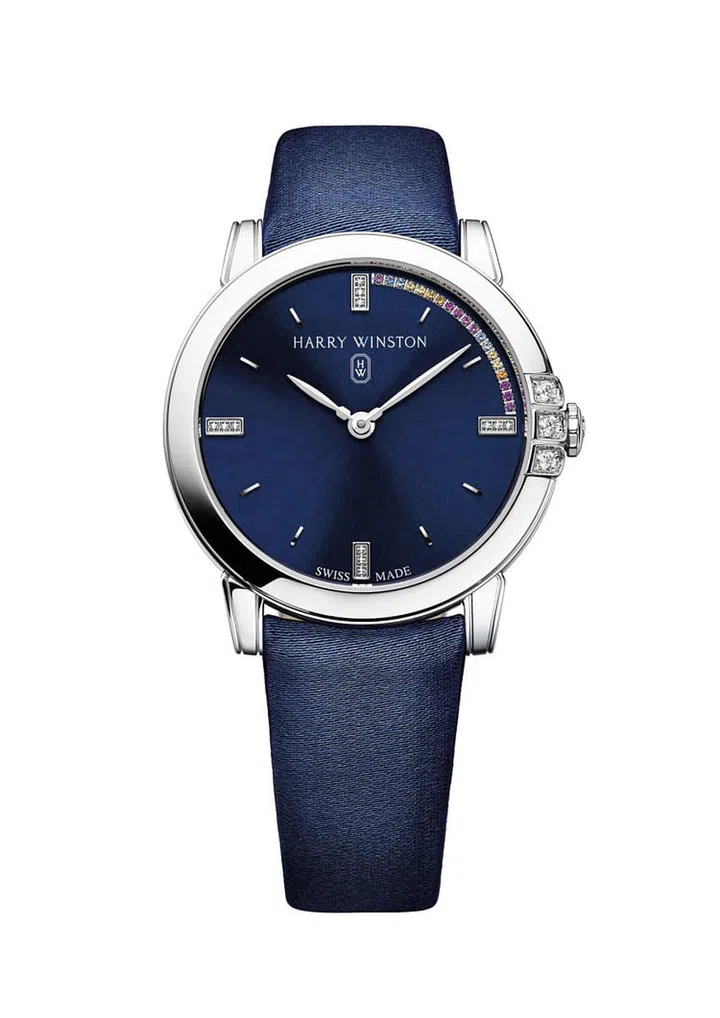 男士42毫米腕表的表盘边缘,缤纷的色彩渐变由深蓝顺时针环绕至12点品牌“HW”logo处鲜明的橙黄色,象征着人们克服对爱之病的恐惧;女装32毫米腕表则选择了用瑰丽宝石诠释生命的多姿:12颗圆形明亮式切割钻石与 19颗绚丽彩色宝石萦绕镶嵌在表盘上闪烁迷人光芒。