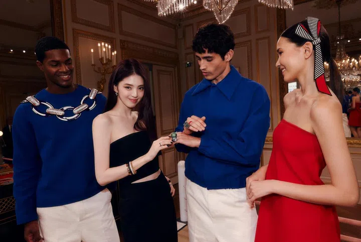宝诗龙(Boucheron)品牌代言人韩韶禧(Han So-hee)赴芳登广场26号宝诗龙之家,感受全新Carte Blanche, More is More高级珠宝系列的缤纷色彩与创意灵感。她佩戴的Carte Blanche, More is More高级珠宝系列“Solve Me”项链,将20世纪80年代风靡一时的魔方进行解构重组,打造这条高级珠宝项链。新款项链摒弃传统项链的曲线,转而采用不同材质与色彩的立方体,以熠熠之姿,承载趣味与欢乐并存的童年回忆。她同时选择叠搭The Quatre Classique XL号手镯、The Quatre Classique L号手镯、The Quatre Classique环状耳环以及The Quatre Classique L号戒指。