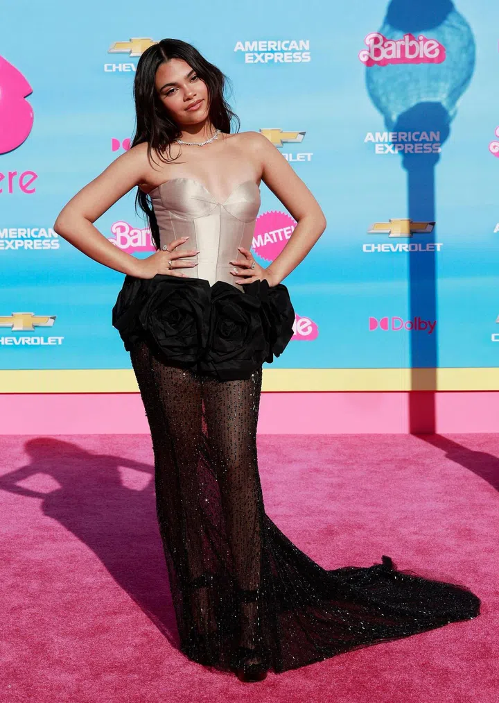 演员阿丽亚娜 · 格林布拉特(Ariana Greenblat)佩戴萧邦(Chopard)Green Carpet系列项链、My Happy Hearts系列戒指、L'Heure Du Diamant系列戒指,出席电影芭比首映礼。熠熠星芒,荧荧钻光,风采不凡。