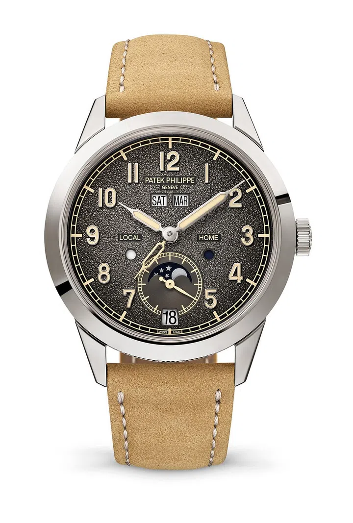 其最大亮点是首次结合了百达翡丽两大标志性的复杂功能:年历装置与旅行时间显示系统。每年仅需手动调校一次的年历装置,以及可显示第二时区的旅行时间系统,同时搭载了获得多达八项专利的新款31-260PSQALU FUS 24H自动上弦机芯,打造一款实力强大的旅行用表。外观设计则延续品牌低调奢华的风格,采用全新Calatrava表壳,侧边雕饰巴黎钉纹图案,搭配炭灰色面盘,设计灵感源自古董照相机,每个细节处都深蕴匠心。