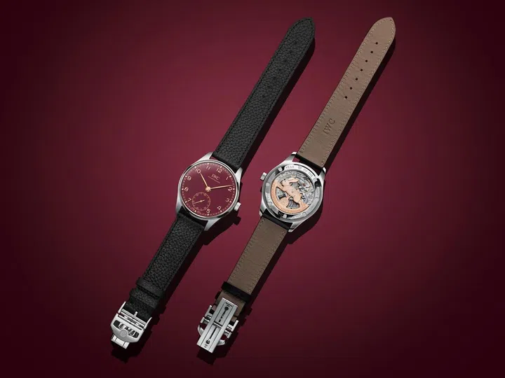 IWC万国表为农历新年推出的葡萄牙系列自动腕表40兔年特别版搭配勃艮第红色表盘以及镀金指针和时标,限量发售500枚。乍看之下与该系列其他腕表没区别,原来品牌将生肖元素“藏”在背面:透过透明蓝宝石玻璃表背可尽览IWC万国表自制82200型机芯及兔子造型的镀金摆陀;此外,表背也刻有“2023 YEAR OF THE RABBIT” (2023兔年) 字样。