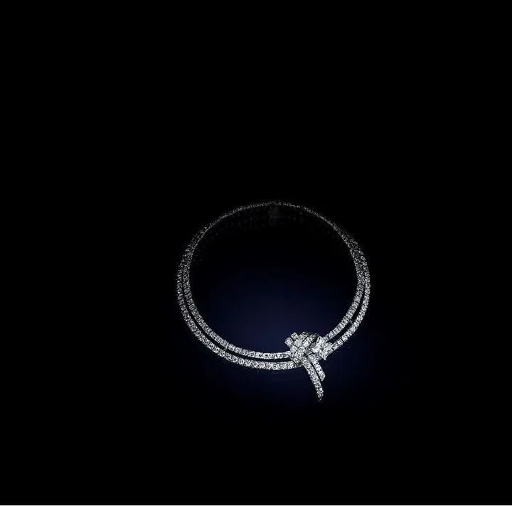 此款钻石短项链闪耀着“幸运星”的光芒,隐喻在旅途中一路指引我们的英雄走出困境的明灯,定将成为路易威登高级珠宝全新经典之作。两排精致平整的钻石令人联想到路易威登旅行箱内部的束带绳结。珠宝工匠在白金绳结旁种下了一枚独特的LV Monogram花朵,这是一颗重达10.07克拉的DIF级2A型钻石,经由LV Monogram星形切割工艺,更添出众。La Star du Nord 系列本身就具有多种佩戴方式,因此这颗纯净无暇的钻石亦可作为钻戒佩戴。配套作品还包括耳环、戒指和手镯。