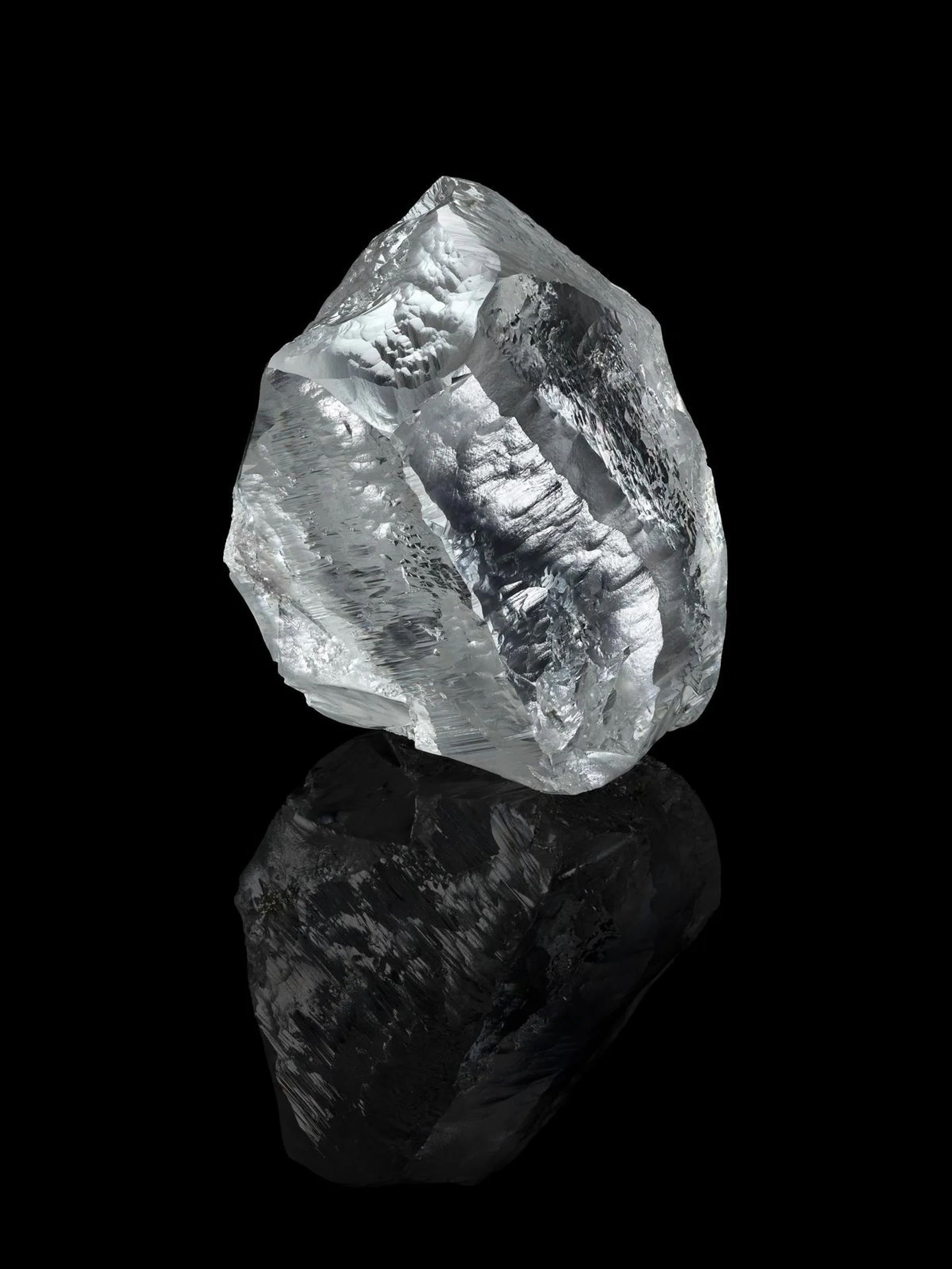 2020 年 2 月 1 日,博茨瓦纳钻石分拣员发现了所有钻石工作者都梦寐以求的珍宝:一颗大得惊人的钻石原石静静地躺在 “手套箱”中。“手套箱”是一台特殊的分拣装置, 配备先进的 MDR(巨型钻石回收)XRT 电路,能够赶在传统的研磨捣碎流程之前找出并回收较大的富碳矿石样本。经过称量与初步评估,这颗钻石的惊人重量 达到 549 克拉,纯度、亮度与色度均很出众。它开采 自卢卡拉旗下矿场的南部矿脉,那里曾出产多颗璀璨 的自然珍宝,包括 1109 克拉的 Lesedi La Rona,以及今年1月路易威登展示的 Sewelô:一颗重达 1758 克 拉、裹着黑色碳层的迷人钻石。