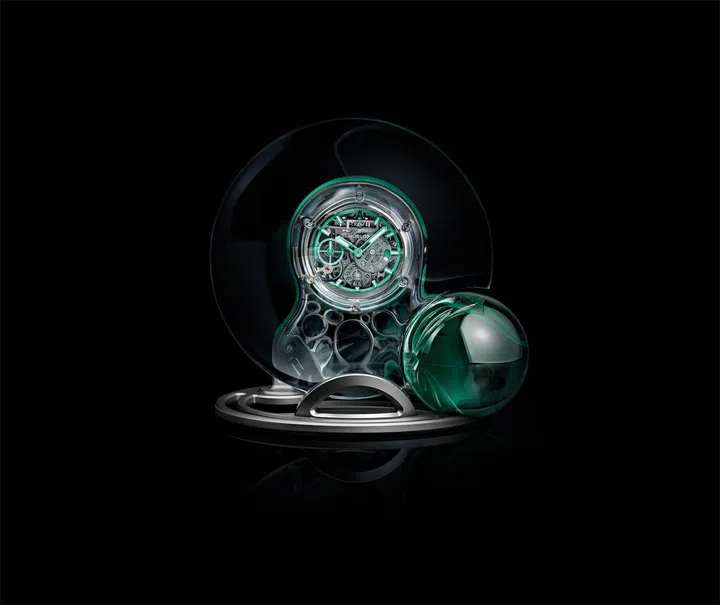 宇舶表(Hublot)与当代艺术家丹尼尔·阿尔轩的开创性合作,见证了Arsham Droplet怀表的问世。全新时计焕新演绎了经典的怀表设计,将怀旧造型、创新材料及先锋制表技艺理想融合。此作品共有三种佩戴方式:既可作为怀表缀于胸前,展现古典韵味;亦可当作吊坠佩戴,诠释现代前卫风范;还能作为小巧精致的座钟摆放,尽显独特魅力。