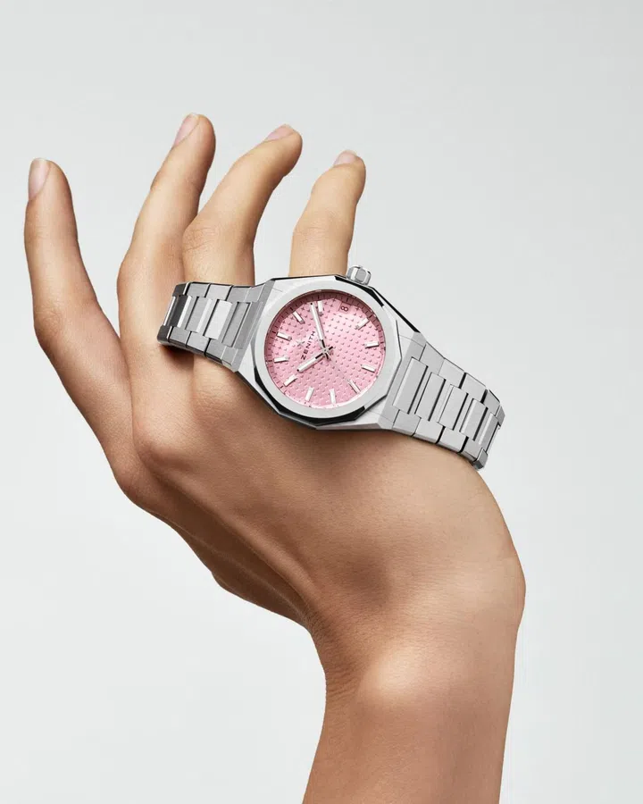 全新尺寸,全新颜色,同样引人注目的造型轮廓,闪耀璀璨星光。Defy Skyline天际腕表现推出36毫米款式,沿袭原型腕表棱角分明的造型,同时推出更含蓄的中性比例款式,适合偏爱精巧尺寸的人士。除了与41毫米版本相同的金属质感午夜色,品牌还推出两款全新色调——樱花粉和幸运绿。