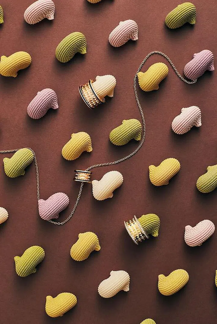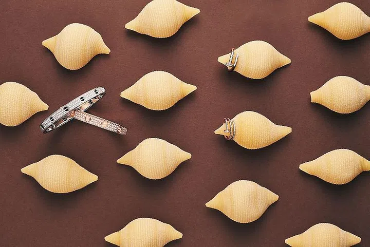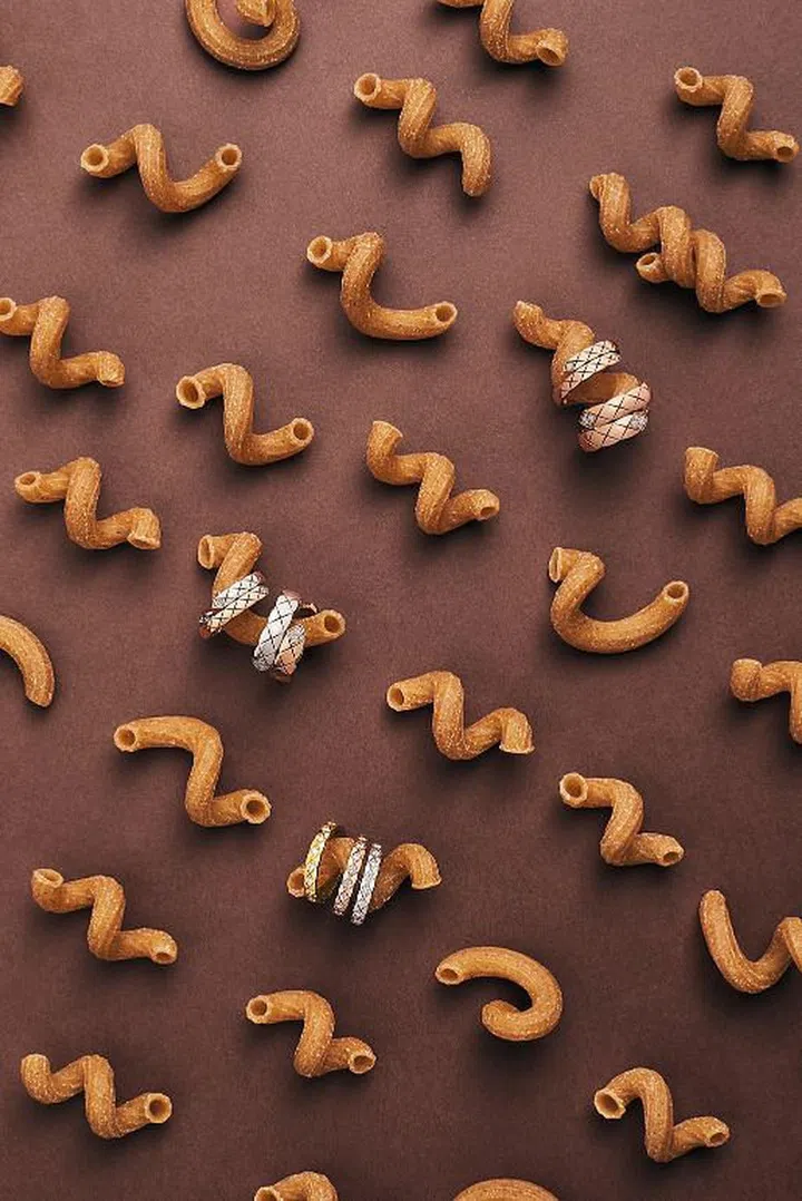 Quatre Black系列小号戒指,白金镶嵌黑色PVD和钻石; Quatre Black系列大号戒指,白金镶嵌黑色PVD和钻石; Quatre Black系列大号戒指,白金镶嵌黑色PVD; Quatre Classique系列大号戒指,黄金和玫瑰金镶嵌棕色PVD和钻石; Quatre Classique系列小号戒指,黄金和玫瑰金镶嵌棕色PVD/Boucheron。