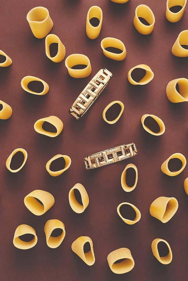 Link to Love系列白金镜面戒指; Link to Love系列玫瑰金镜面戒指; Link to Love系列黄金镜面戒指; Link to Love系列黄金饰钉戒指; Link to Love系列黄金镶嵌绿碧玺戒指; Link to Love系列白金镶嵌粉红碧玺戒指/Gucci。