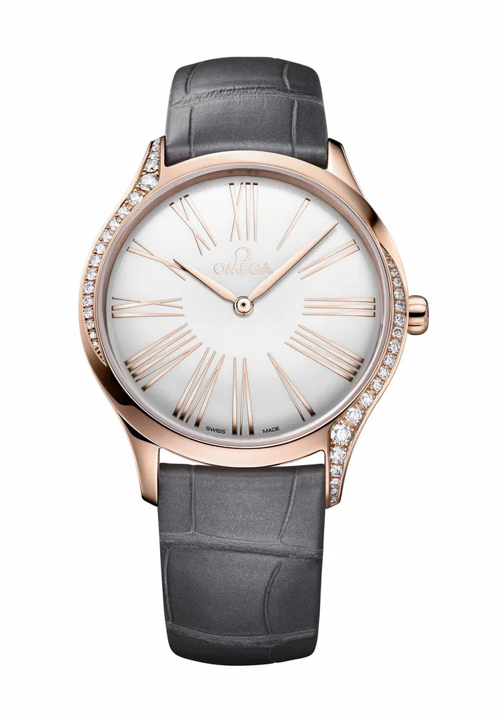 欧米茄(Omega) Tresor腕表是女表工艺的现代经典杰作,它结合地球最珍贵的材质与纯净设计,呈现纤薄、优雅的外观。这款36毫米腕表材质为18K Sedna金,是欧米茄旗下的一种不朽玫瑰金。Sedna金表壳两侧弧线镶嵌璀璨钻石,而表观精致共色陶瓷花朵图案的中央也镶有一颗美钻。