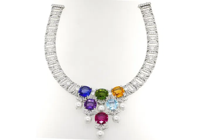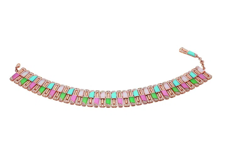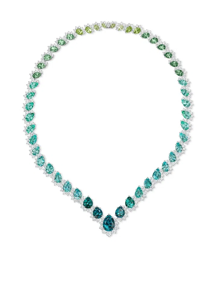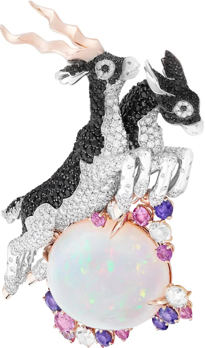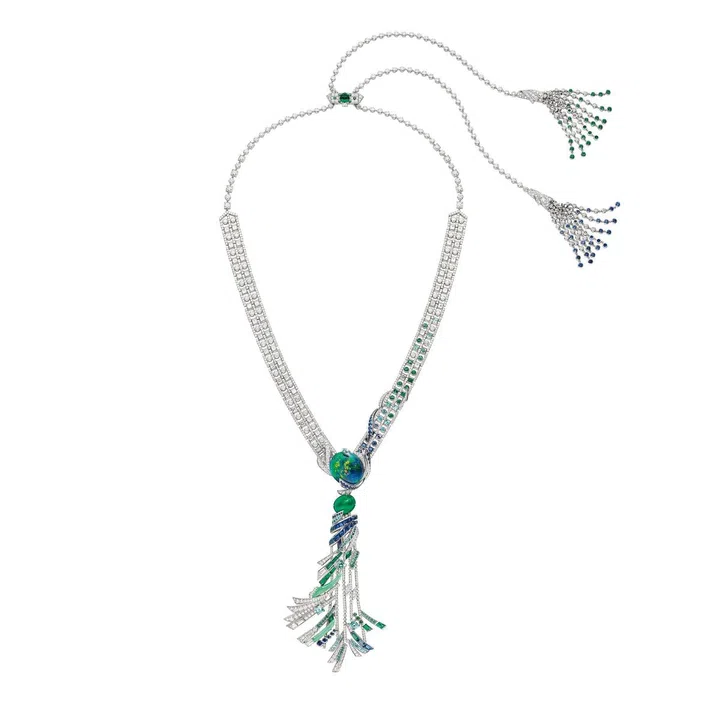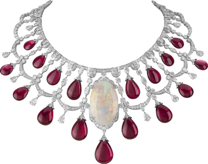 Carte Blanche - Holographique高级珠宝系列Opalescence可转换式项链,玫瑰金镶嵌1颗71.69克拉的蛋面切割埃塞俄比亚白欧泊、1颗46.91克拉的蛋面梨形切割埃塞俄比亚白欧泊、欧泊石珠子(总重量1518.78克拉),缀以漆面/Boucheron。