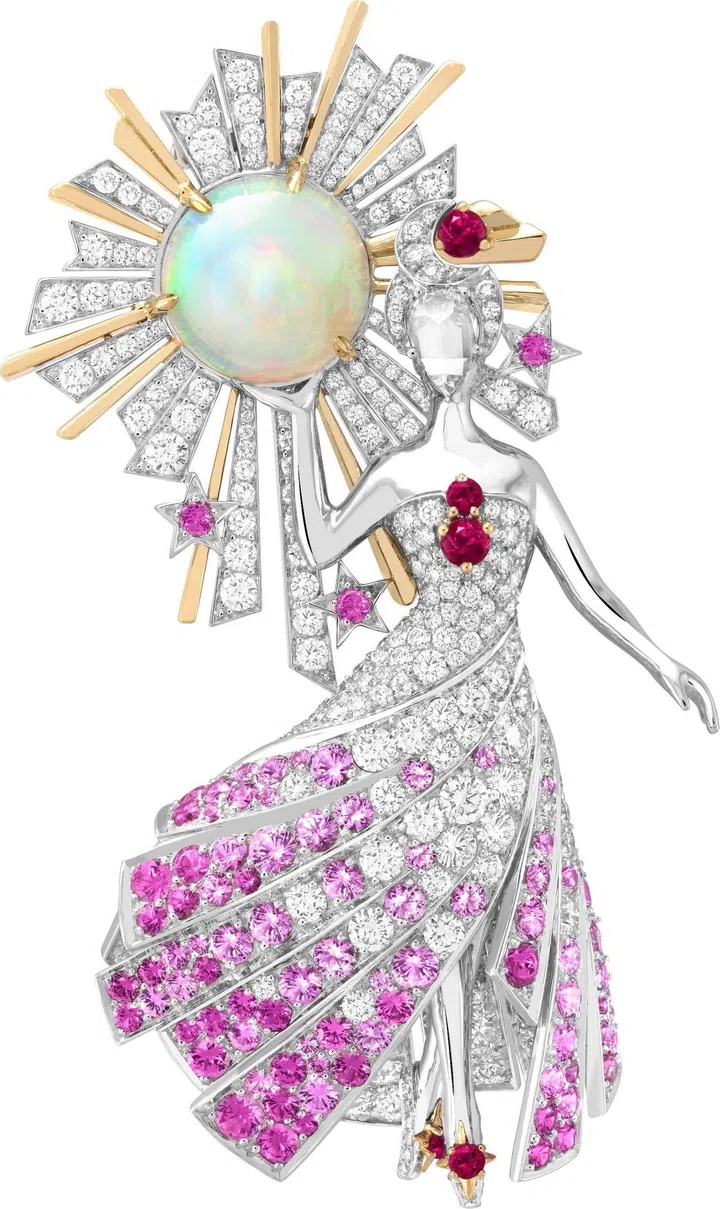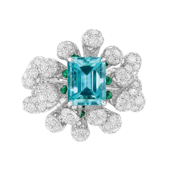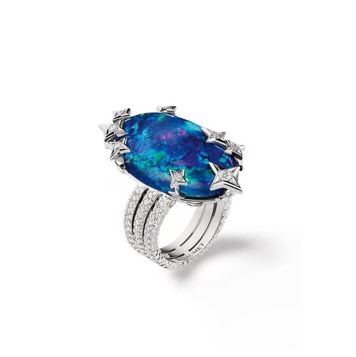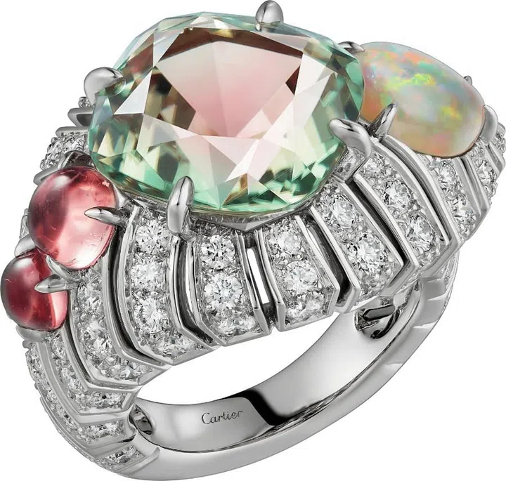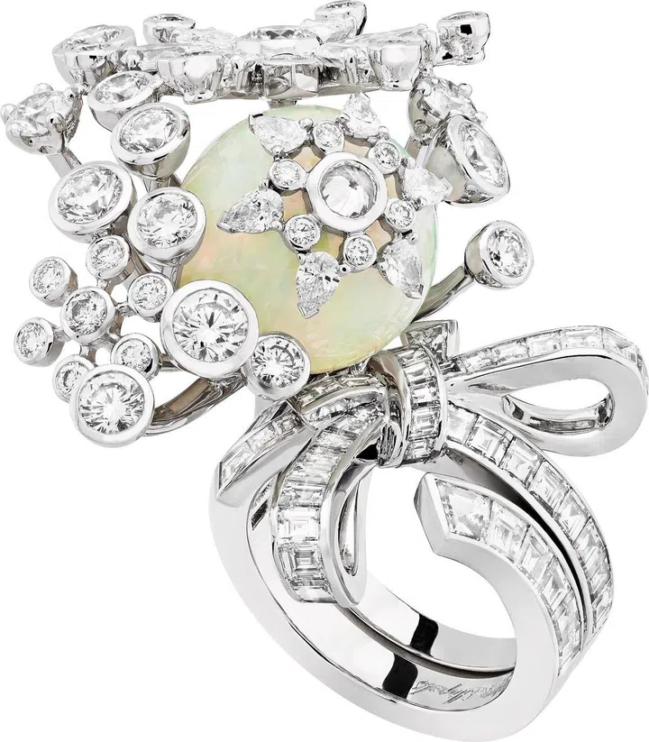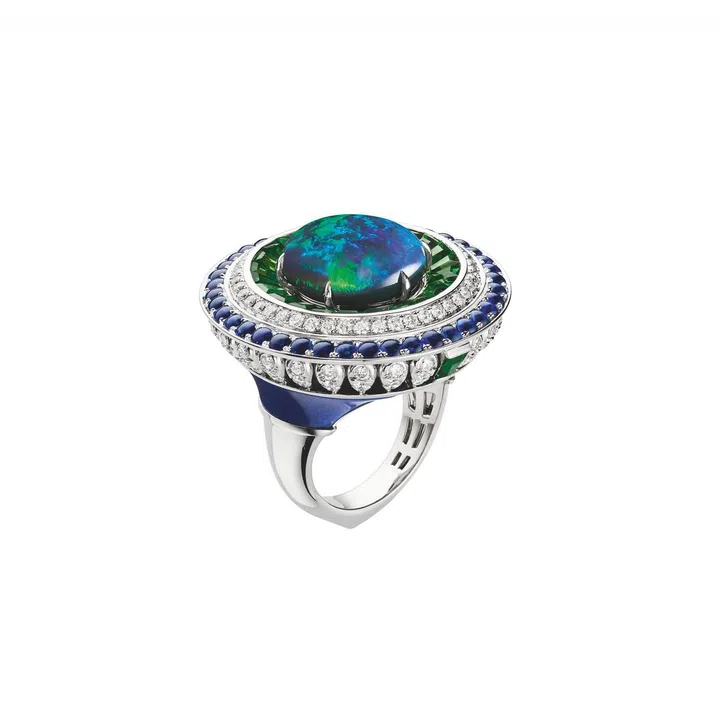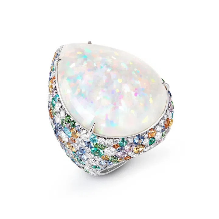 Carte Blanche - Holographique高级珠宝系列Illusion 白金戒指镶嵌1 颗50.95克拉的蛋面梨形切割埃塞俄比亚白欧泊,同时镶嵌蓝色、黄色及粉色蓝宝石,沙弗莱石,橙色及绿色石榴石,祖母绿,蓝色碧玺以及钻石/Boucheron。
