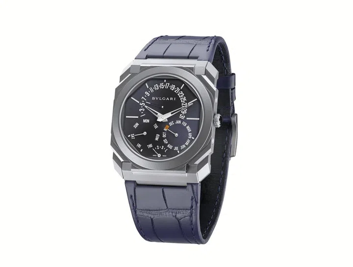 宝格丽(Bvlgari)今年推出的Octo Finissimo带领Octo第七度打破纤薄纪录,全赖其搭载了厚度仅有2.75毫米的BVL 305自动上链万年历机芯,机芯中经过制表师巧妙的设计布局,与采用特殊的齿轮,不但大省空间,还使表盘的万年历日期能进行大幅度逆跳。品牌决定把这杰作搬上Only Watch拍卖舞台,更打造出由深灰色泽的钽金属所制作的版本。钽金属的重量与坚硬度分别为不锈钢和钛金属的两倍,具备高度抗腐蚀与生物相容性。在表盘上,可见月份“NOV”中的“OV”字母被改成橘色“OW”,呼应Only Watch的主题与缩写。