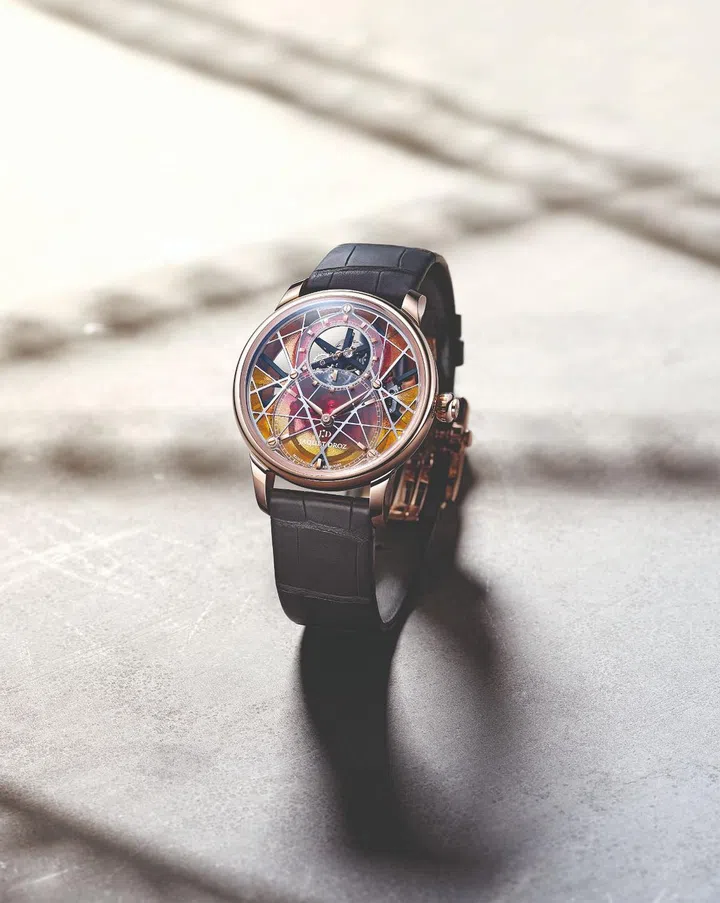 雅克德罗(Jaquet Droz)本次捐赠的是一款表盘饰有空窗珐琅的大秒针镂空陀飞轮One腕表(Grande Seconde Skelet-One Tourbillon)。由品牌自主研发的陀飞轮,采用钛金笼架代替了传统的蓝宝石水晶支架,不仅使陀飞轮更为轻盈,更优化了精密的时计功能。陀飞轮中的游丝和擒纵叉采用硅质,开放式设计的陀飞轮可以穿透光线,夺目耀眼却不失轻盈之感。此外,雅克德罗专门为Only Watch打造极具特色的空窗珐琅表盘。品牌用非常细腻的钻石粉末打磨各个珐琅分区,实现了表盘不同凡响的纤薄度同时呈现出平整光滑的优美状态。