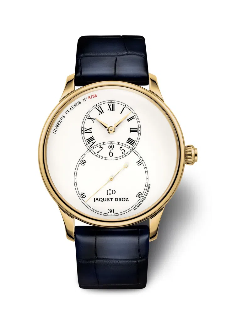 创立280周年之际,雅克德罗决定用诞生于2002年的代表作大秒针庆祝这一时刻。大秒针Tribute腕表是品牌首次推出的黄金腕表。品牌完全保留Pierre Jaquet-Droz的最初设计理念。12时位置设时针和分针,时标超越两个世纪的潮流,采用罗马数字和阿拉伯数字交替的设计,令双表盘的读时清晰明了。6时位置设更大的圆形大秒针盘,从而构成数字“8”造型,采用古老传统的大明火珐琅工艺打造出色泽均匀的象牙色调表盘,成为记录时间的隽永之作。