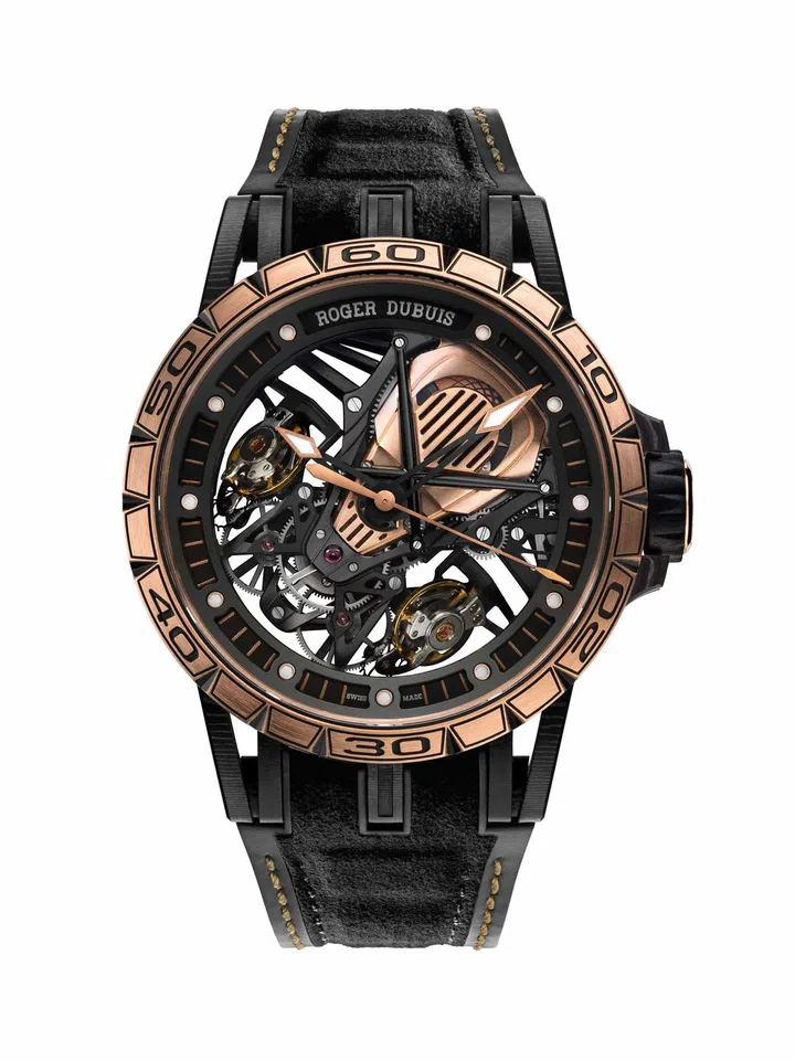 去年底,罗杰杜彼开启了与兰博基尼(Lamborghini)的合作,全新的Excalibur Aventador S系列腕表从兰博基尼经典超跑车型中汲取灵感,Excalibur Aventador S 系列玫瑰金腕表则延续前身“Giallo Orion”(黄色猎户座)时计,配备 着相同的复层碳纤维镂空表壳,但这次以具有丰富光彩和温暖特质的玫瑰金来装点腕表。