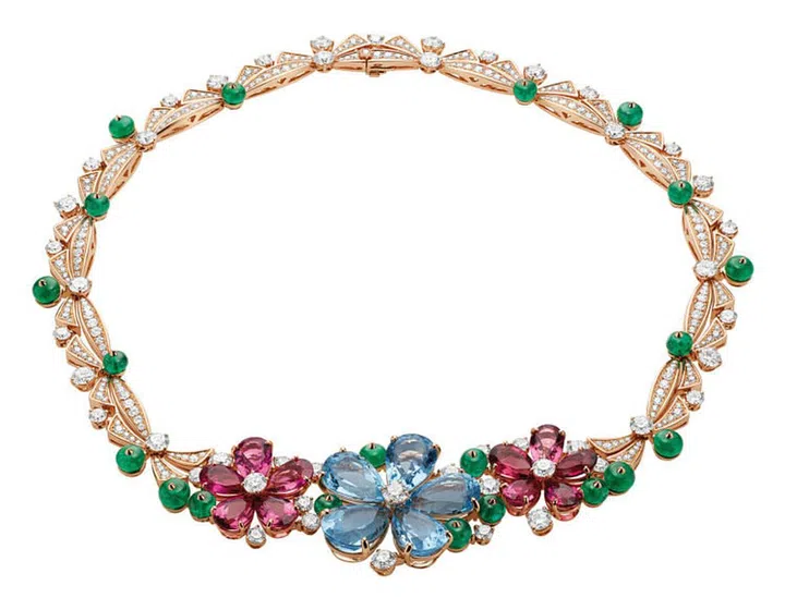 Bulgari品牌创意总监Lucia Silvestri今年以The Magnificent inspiration这个大主题开展创意,再通过三大主题诠释珠宝美态,当中的地中海伊甸园(Mediterranean Eden)系列,透过一组宝格丽之花,像Fiore di BVLGARI,喜悦之花(Fiore Allegr),以珍贵的坦桑石、蓝宝石和钻石,或者温润的海蓝宝石和红碧玺的花朵项链,缔造出层次丰富的花瓣,透过出色的构图,让这组花卉珠宝散发着清雅而耀眼的光芒。