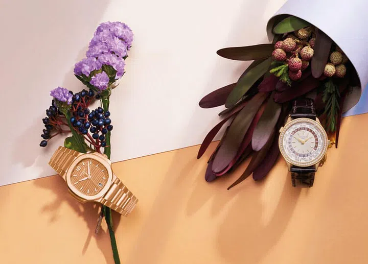 左至右: Nautilus系列自动上弦玫瑰金女士腕表7118/1R; 复杂功能时计系列女士腕表7130R。