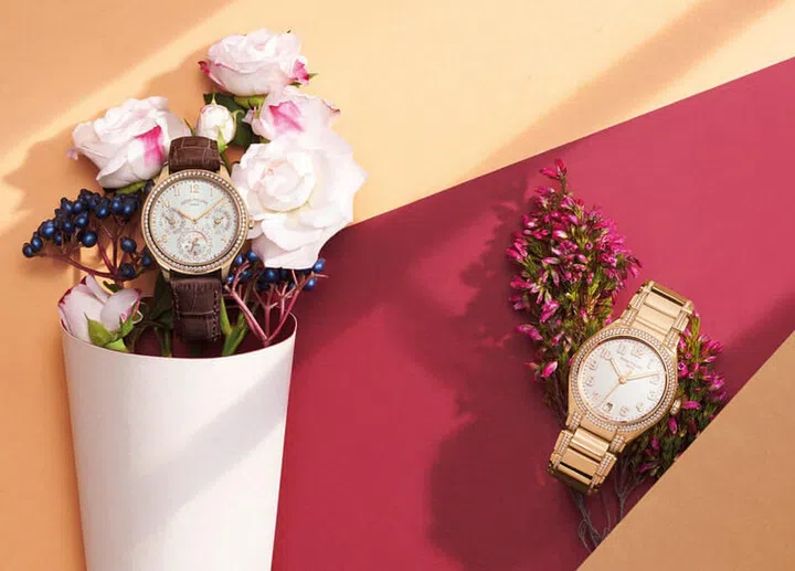 左至右: Ladies First万年历腕表7140R; Twenty~4系列玫瑰金自动上弦机械腕表7300/1201R。