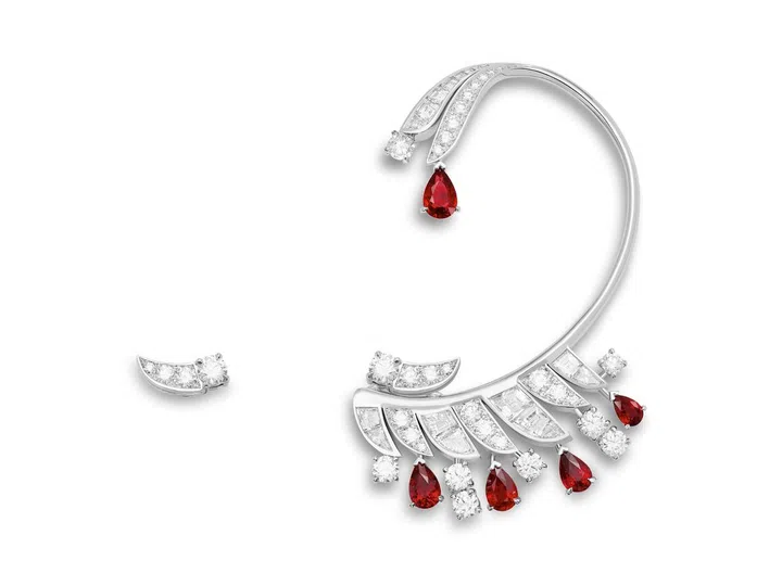 随着天色渐暗,象征著传统的红色灯笼被点亮,宛如炽热的火苗,向天空释放殷红色的光芒。 这条炽烈之夜Blazing Night 主题项链,借由鲜艳的红色,烘托出灯下之人的热情,因此使用了12颗产自莫三比克和泰国的瑰丽红宝石,并以梨形切割形状与天灯优美的弧线交相呼应。
