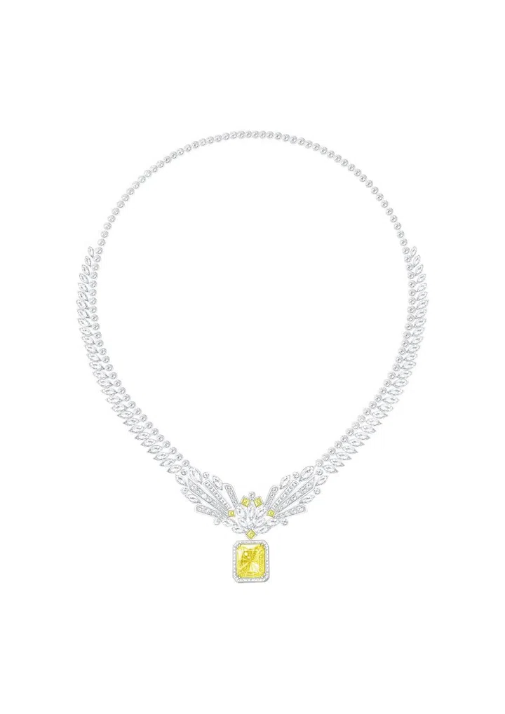 这条非凡光景主题项链是第三篇章 Infinite Lights 永恒光境中的亮点作品。伯爵工艺大师花费了450多个小时才将数百颗顶级宝石幻化为动人心弦的顶级珠宝。作品采用铰接式设计,因此佩戴时极为舒适,其中项链的主石是一颗内无瑕重达8.88 克拉枕形切割的艳彩黄钻, 并且搭配一颗5.34克拉的梨形斯里兰卡蓝宝石、一颗 3.61克拉梨形坦尚尼亚红色尖晶石,更以鲜艳的锰铝榴石和美钻,营造出宛若派对高潮时刻的迷人氛围。 这款项链展现出动人心魂的美感, 同时兼备独具创新的功能性,可灵活调节的独特设计共有多达六种佩戴方式,鲜活地展现“白昼到黑夜”的不同景致。