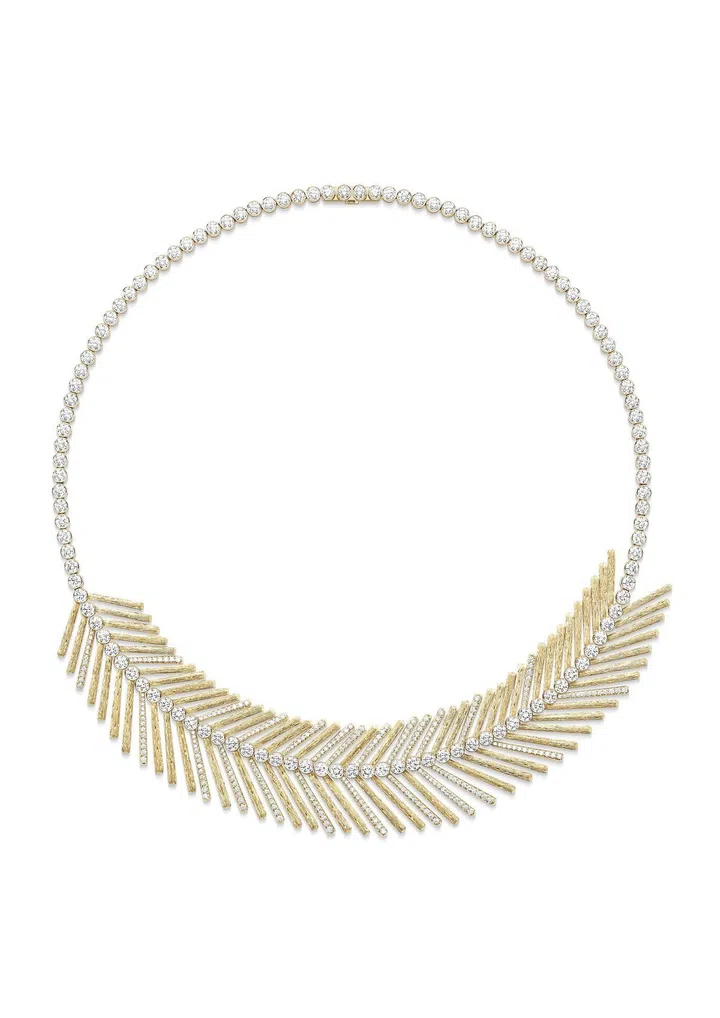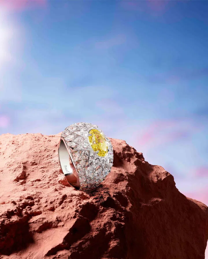 Play of Lights (幻变之光)灵感来源于连绵起伏沙漠之上的无尽长空。闪烁着迷人光彩的宝石与黄金,刻画出从白昼的耀眼阳光到夜晚的繁星点点,呈现一场令人心驰神往的光之盛宴。当骄阳高悬于穹顶之时,整个大地霎时间沐浴在炽热炫目的阳光中,涌现融融暖意。