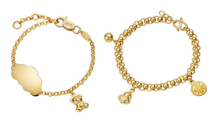 无论是可爱的卡通人物手链,还是经典的金脚链,这些令人难忘的首饰能够传达你对宝宝的爱和美好祝福。对Lab Studios的联合创始人Jasmine Chong 来说,儿子Joshua 出生100天时收到的黄金首饰,时至今日仍是非常特别和重要的。她说:“我家婆和婆家姐妹各送了他一件金首饰。 Joshua 的华文名意为‘丰富、充裕’。对我们来说,他带来满满的喜悦,这些礼品则带着满满的祝福,因此意义非凡。”
