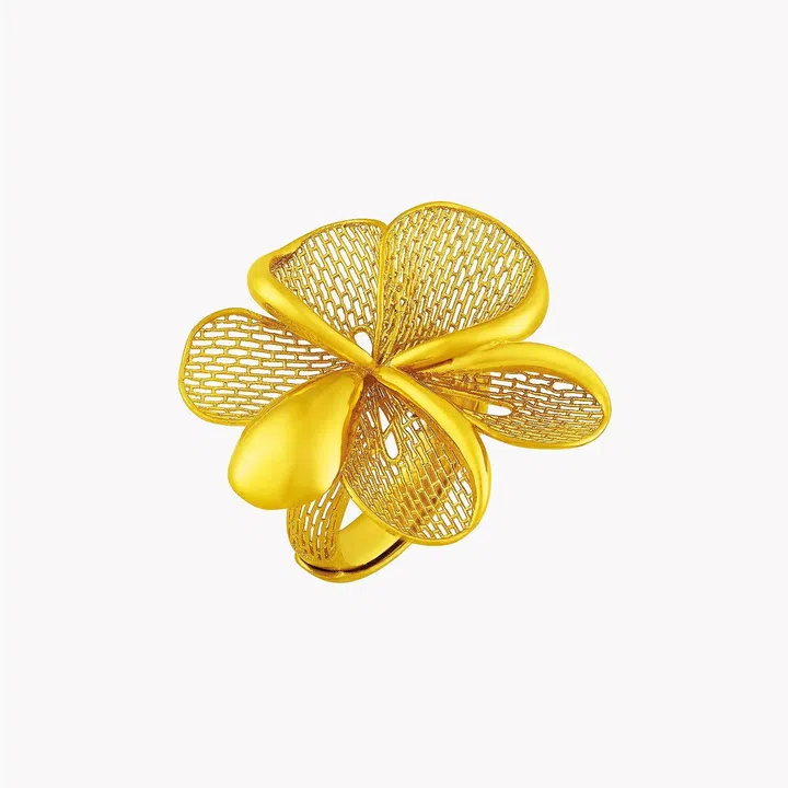 为了迎合现代人的需求,本地老字号金饰品牌宝兴(Poh Heng)不断推陈出新,透过摩登创意设计,让传统四点金金饰系列变得时髦,不再只是婚嫁首饰或祝福的传递,也可以化作适合日常穿戴的时尚饰品,例如以24K黄金打造的Blooming Serenity Si Dian Jin戒指,以绽放的花朵为主题,透过镂空设计系列,为象征着爱情与优雅的这款作品增添现代时尚魅力。戒指可与同系列的手镯、耳环及项链搭配,完美演绎典雅风姿。