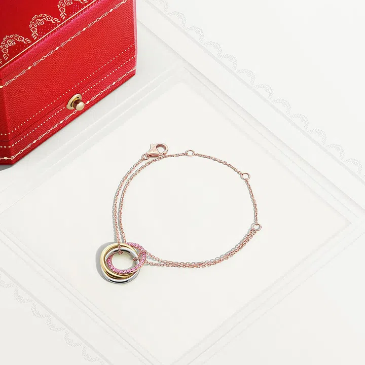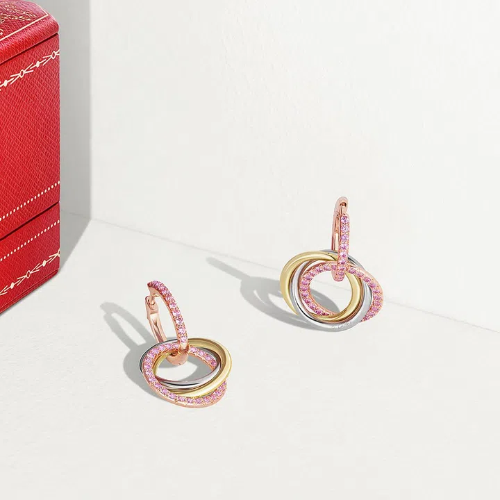 爱,是挚爱无垠,蕴涵着以爱牵绊的无数瞬间。粉色蓝宝石环绕相守,与双色戒圈缱绻交织,以缤纷色彩重新演绎Trinity的经典寓意。卡地亚(Cartier)Trinity系列中国大陆独家限定七夕特别款手链、项链及耳环,传达美好爱意,释放真挚情感。