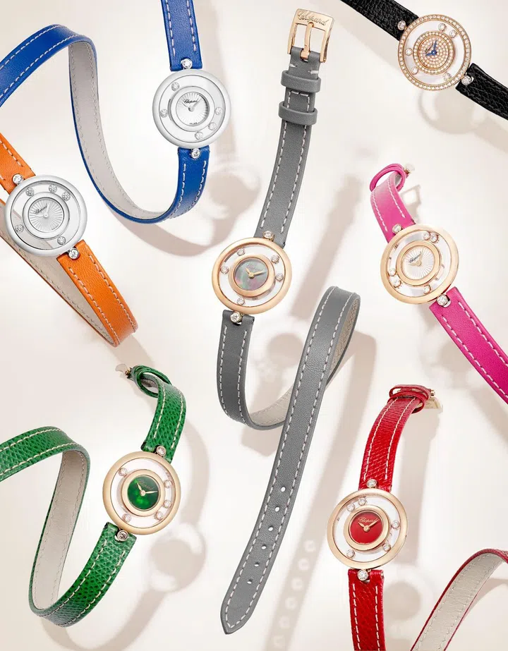 萧邦Chopard)Happy Diamonds系列珠宝腕表又推出全新灰色光滑nappa皮革表带,与表盘相得益彰,同时搭配金米色缝线。柔软纤长的表带环绕手腕两圈,以妙趣雅致的方式凸显腕表魅力。