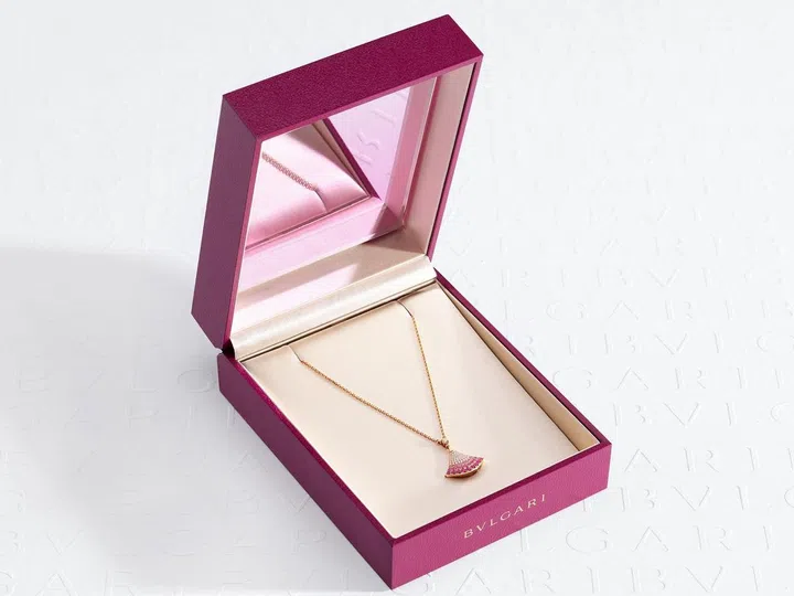 宝格丽(Bvlgari)Divas' Dream系列项链体现意式优雅魅力,以神秘且令人难以忘怀的气质,释放女性力量。魅力四射的精致吊坠饰以扇形图案,从罗马卡拉卡拉大浴场(Caracalla Baths)的彩色马赛克装饰中汲取灵感,彰显宝格丽同“永恒之城”罗马之间的历史渊源。这一系列的标志性图案,以闪烁精致光芒的粉色蓝宝石重新演绎,展现浪漫柔情,专为七夕情人节打造。