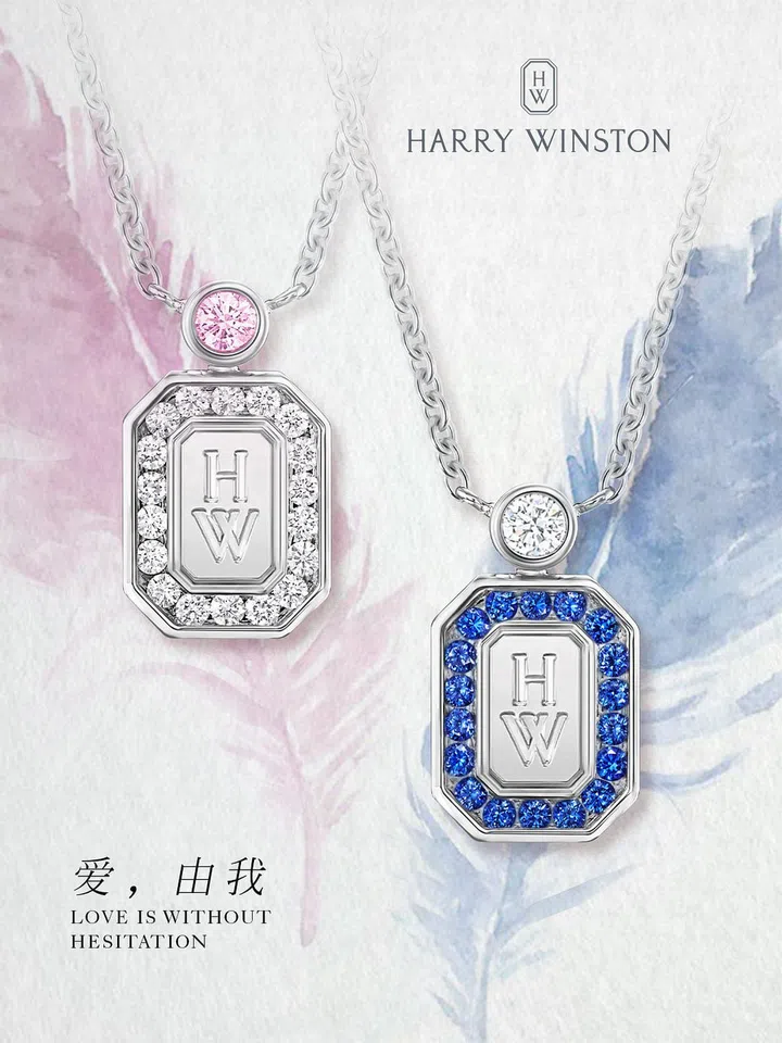 在甜美气息之下,邂逅浪漫。海瑞温斯顿(Harry Winston)中国限定HW Logo粉色蓝宝石项链在白18K金打造的品牌标识周围以密钉镶嵌工艺环绕点缀璀璨美钻,一颗熠熠生辉的粉色蓝宝石镶嵌顶端。另一款中国首发的HW Logo蓝宝石和钻石项链,华美的蓝宝石以密钉镶嵌工艺环绕点缀在白18K金打造的品牌标识周围,顶端镶嵌一颗璀璨钻石。