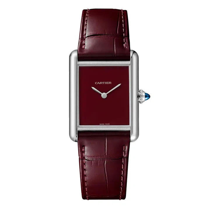全新Tank Must腕表运用卡地亚标志性色彩之一——红色,致敬80年代精神。品牌摒弃罗马数字时标及分钟轨,采用简约风格表盘,同时搭配同色系表带,打造全然一体