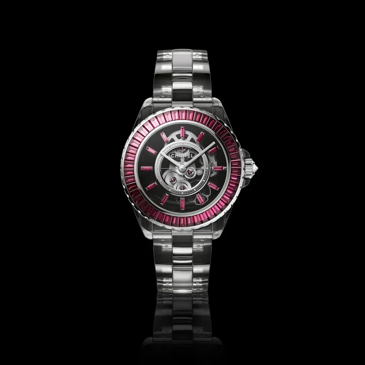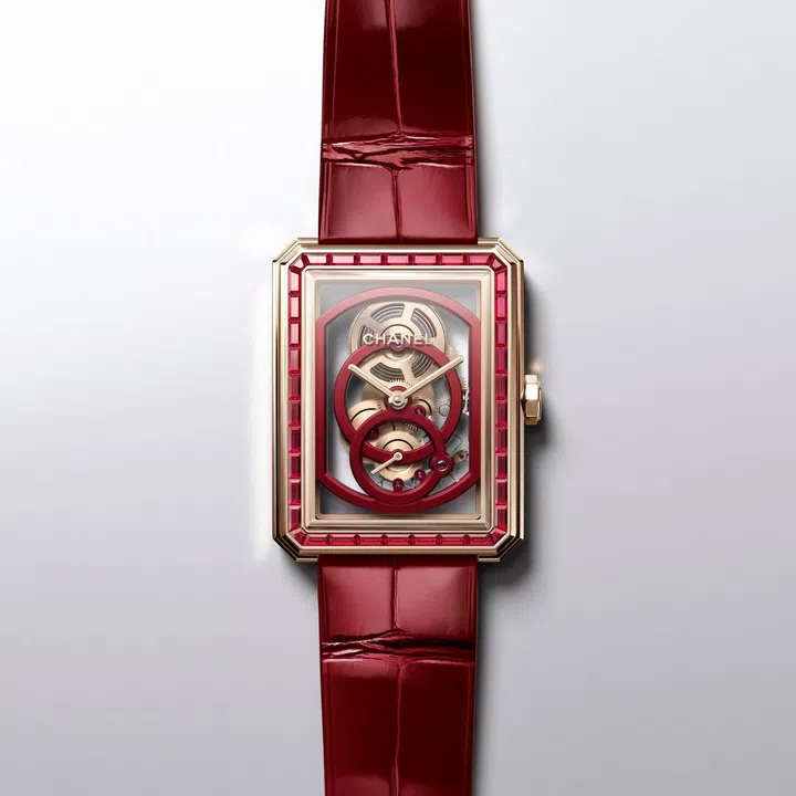 2022年,香奈儿(Chanel)J12 X-Ray Red Edition腕表以红色重新演绎J12 X-Ray,鲜明的色彩对比让这款时计充满生命力与热情,红宝石则为这款腕表增添更多细节。Caliber 3.1机芯的分针表桥与齿轮表桥如精美华美刺绣般相互交织,极尽美感。