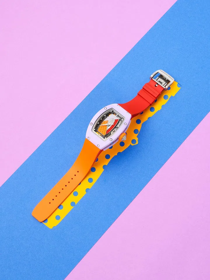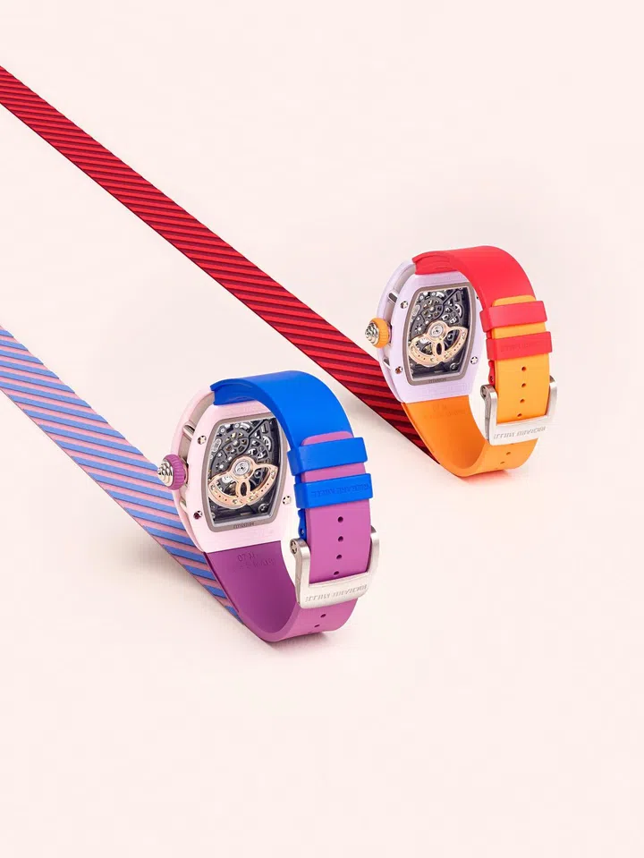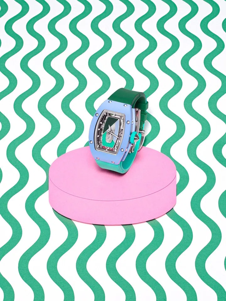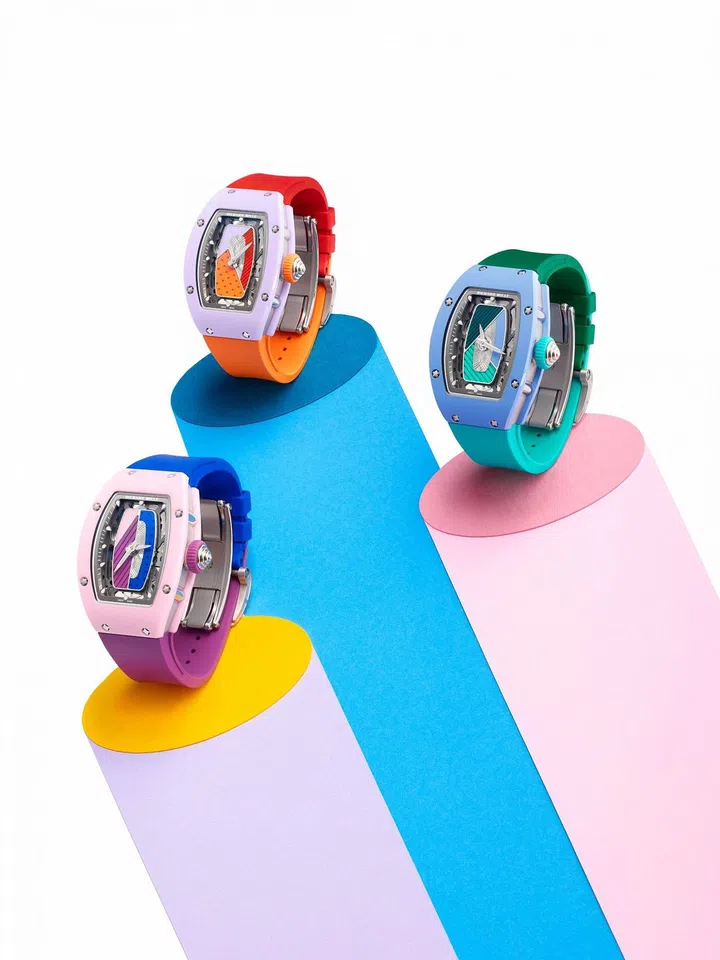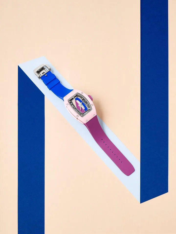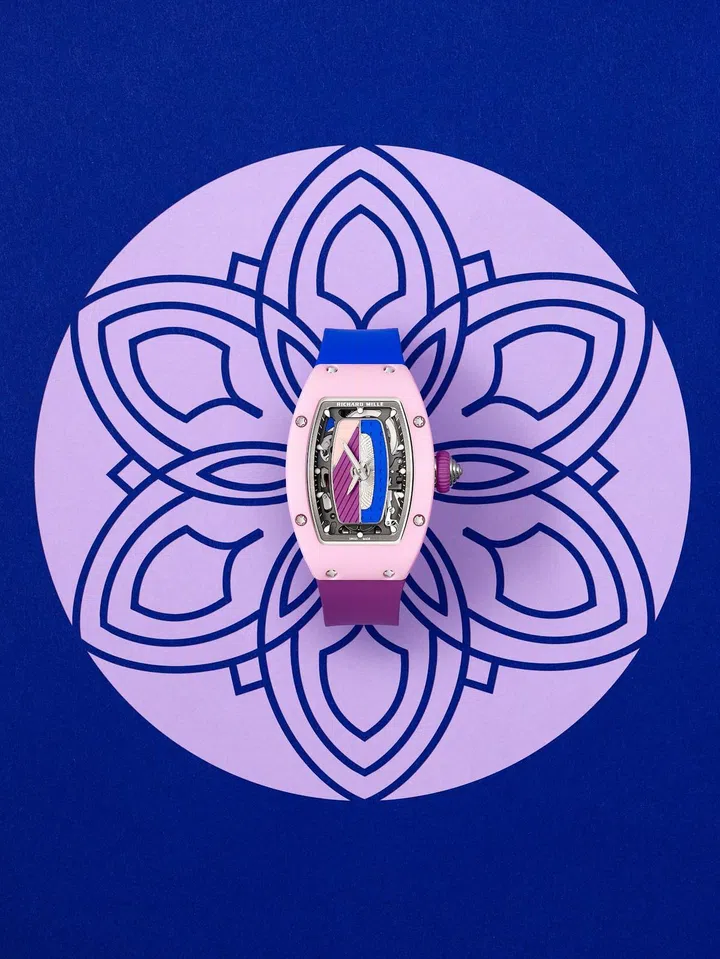 RM 07-01作为理查德米勒(Richard Mille)最具女性风格的腕表系列,每一次的迭代更新都会引起轰动。此次推出的三款彩色陶瓷女士腕表RM 07-01 Pastel Blue、RM 07-01 Pastel Pink,以及RM 07-01 Pastel Lavender,配备不同颜色的表壳及独特的表盘图形元素,带来无尽夏日雅趣。