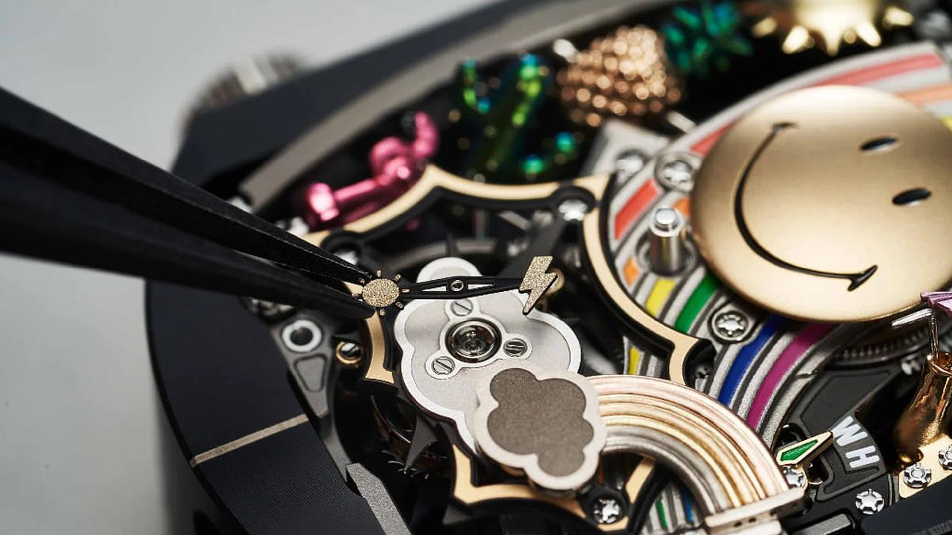 精表珠宝微笑正能量!理查德米勒RM 88 SMiley自动上链陀飞轮腕表理查德米勒(Richard Mille)推出历时3年的研发的RM 88 SMiley自动上链陀飞轮腕表,灵感源自Smiley world及其价值观 ,散发满满正能量。文 / 张思嘉 / 3 Oct 2022richard mille, WatchesShare this article作为人类与生俱来的表达方式,微笑是世界通用、具有多重意义的语言,更是我们社会关系的基础。理查德米勒(Richard Mille)以曾经在1972年在《法兰西晚报》问世的一张黄色笑脸为灵感,结合精雕、别出心裁的精巧设计,打造出一款洋溢笑容、轻快、幽默的RM 88 Smiley自动上链陀飞轮腕表,散发正能量。剩放的花朵、讨喜的仙人掌、带刺但甜美多汁的黄梨、粉红色的火鹤、还有带来好心情的彩虹、插上小伞装饰的鸡尾酒...这些童心满点的精细的K金模型全数出自雕刻师Olivier Kuhn之手。每个组件都不到一公克,但全数经过精巧的形塑、雕刻、打磨,最后像是打开一个藏宝箱般,出现在表盘之中。可别小看这些精密模型,最复杂的鸡尾酒杯由雨伞、橄榄、具有弯曲折痕的吸管与酒杯组成。为了呈现鸡尾酒的清凉感受,酒杯下方再经微喷砂处理,具现了水珠凝结的意象。可爱又浪漫的火鹤不仅底座以微喷砂加工,其眼球使用极小的圆珠线刨工具打造,同时翅膀、羽毛与零件,都经过抛光润饰、金属粉色PVD涂层等不同工序。然而在打造完这些精巧组件后,如何将之与高精密机芯结合,安置、组建,则成为另一场考验智慧与技术的建筑游戏。为此,理查德米勒全新自制的CMRT7镂空自动陀飞轮机芯使用了两块机板,一块用以支撑机芯、第二块辅助底板则用以固定面盘左侧的装饰组件,再将辅助底板安装于机芯上,恰巧让所有模型零件赋予生动的存在感。RM 88 Smiley的表壳使用白色ATZ陶瓷打造,具有抗刮、抗冲击、耐磨损等特点,中层表壳则运用红金,并在表冠上加以黄金雕刻出Smiley微笑造型。richard mille, WatchesShare this article