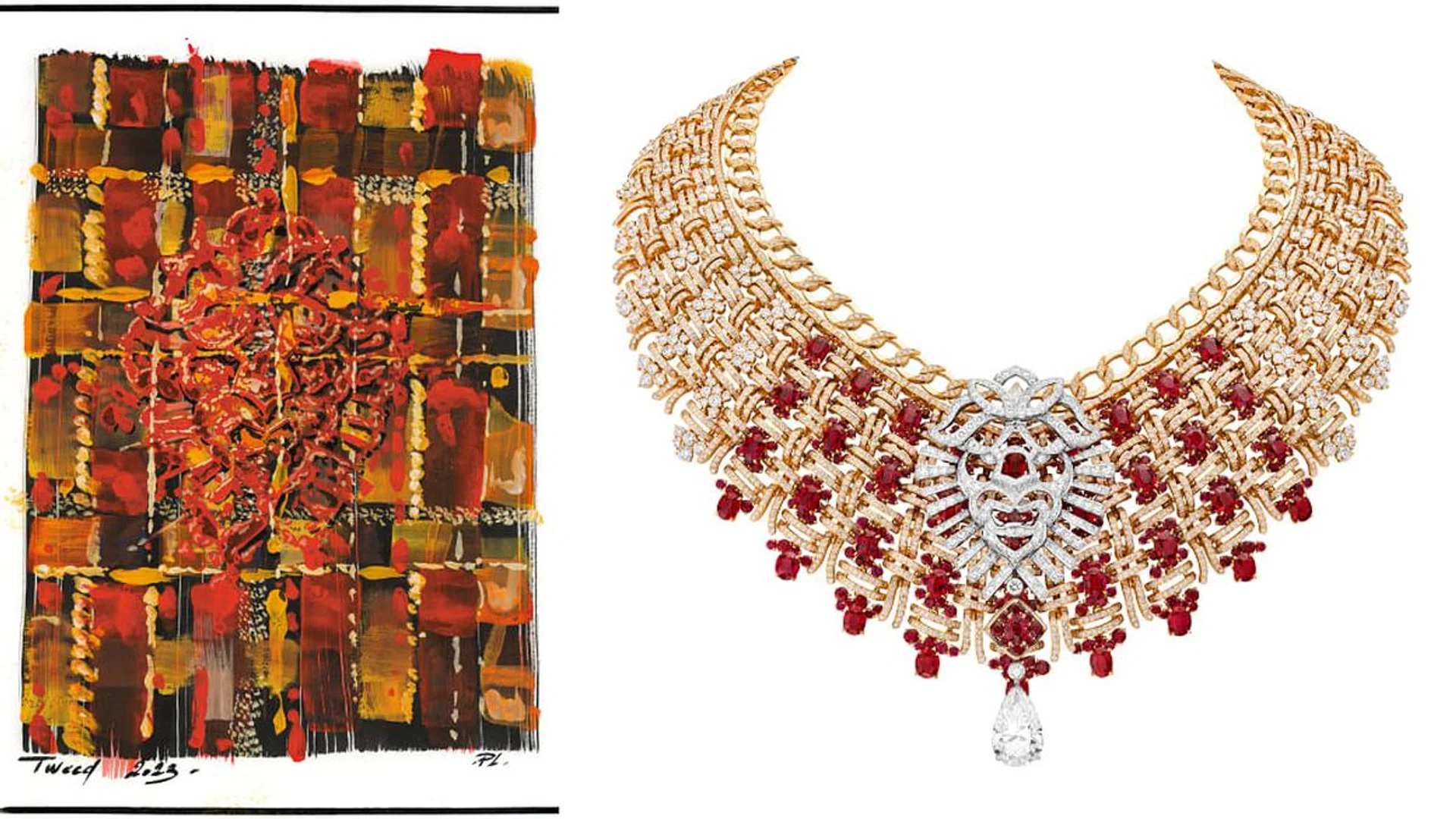 2023 年,Patrice Leguéreau 再次探索斜纹软呢的神奇魅力,推出 63 件前卫大胆的全新臻品珠宝作品,“我的梦想是创作出由珍贵宝石打造的斜纹软呢”。