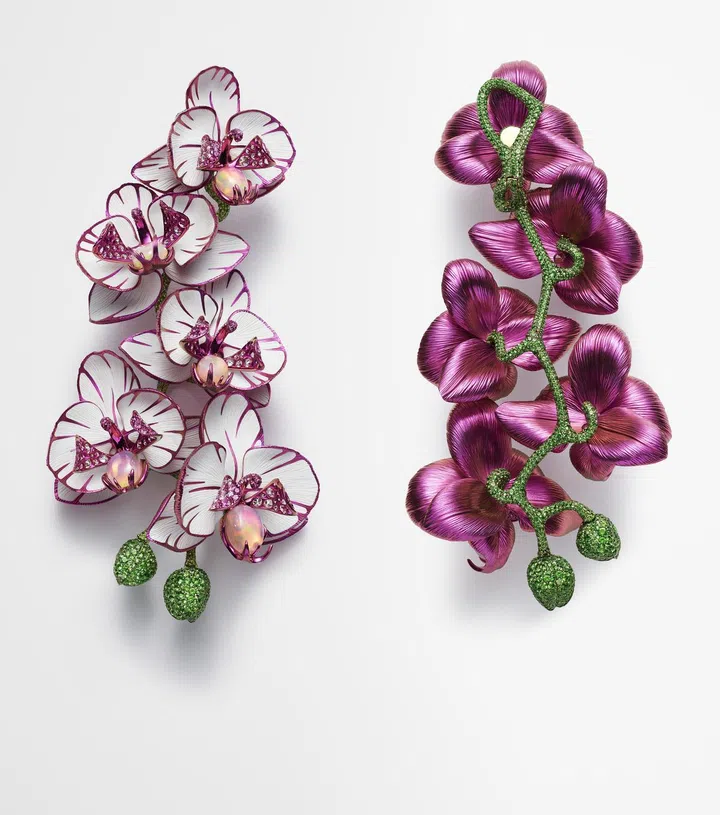 Caroline热爱旅行,足迹甚至抵达俄国沙皇的宫廷,她亦追随品牌作品的去向,全年游访众多国家。她从丰富多彩的旅行中汲取灵感,借由Red Carpet系列带领我们进入她的幽秘梦境,领略甜美、丰盈、神秘的梦幻巧思。建筑、艺术、文学或电影,当然,还有大自然,旅途中所遇到的每一件事物,都会成为她的灵感源泉。每件作品都由不同形态、多种颜色的珠宝组成,不拘一格。萧邦就这样打破了固有界限,突破传统的外观,让Red Carpet这一高级珠宝系列赋予了康城影展这个年过七旬的长寿电影节新的活力。