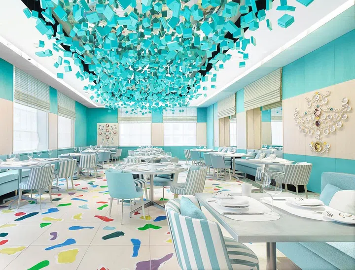 The Blue Box Cafe同样焕然一新,开辟出私人用餐区与陈列艺术装置的吧台区,满足顾客不同需求。蒂芙尼特邀纽约米其林星级厨师丹尼尔·布鲁(Daniel Boulud),根据不同时节精心研发包含早餐与下午茶的日间菜单,为顾客们提供别具一格的用餐体验。