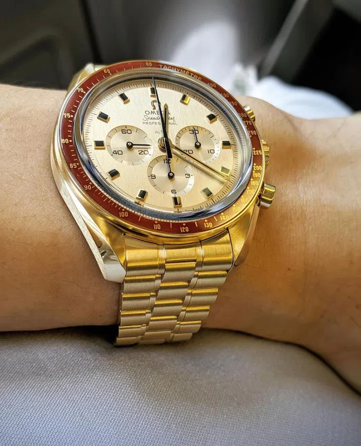 JJ另一款收藏是欧米茄(Omega)的Speedmaster BA145.022。为纪念今年人类登月50周年,欧米茄推出复刻版限量腕表,全球限量1014只。迷人的月光金,酒红色的陶瓷表圈,展现低调奢华。另一卖点,它是NASA唯一官方认证的表款,在当年通过耐热和震动等测试,拥有绝佳的耐用性。(照片/@jjlin)